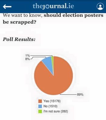 Interestingly more and more tidy towns groups in towns and villages all across Ireland are also asking for election poster free zones. All other candidates in other constituencies are also supportive of the idea, as are most of the electorate! In a recent poll by the Journal, 89% of the electorate wanted to see election posters scrapped altogether. Could we be seeing the last of election posters? Hopefully there will be a decline in the use of them in the coming years.