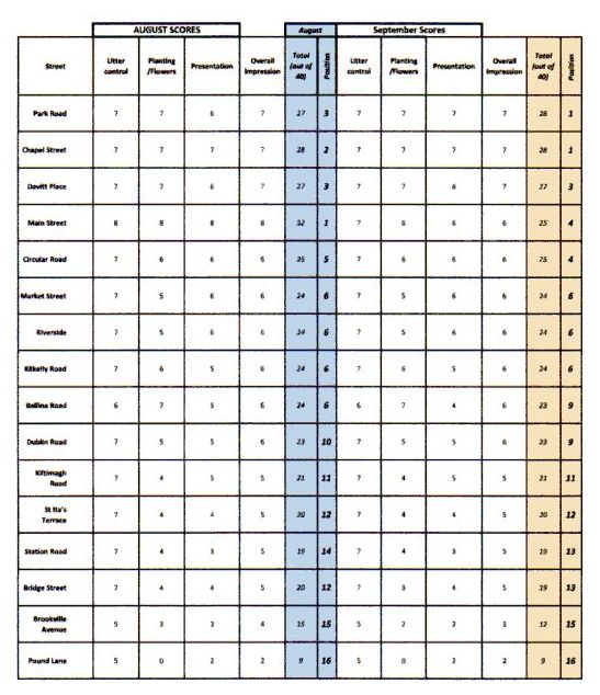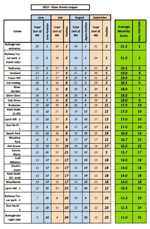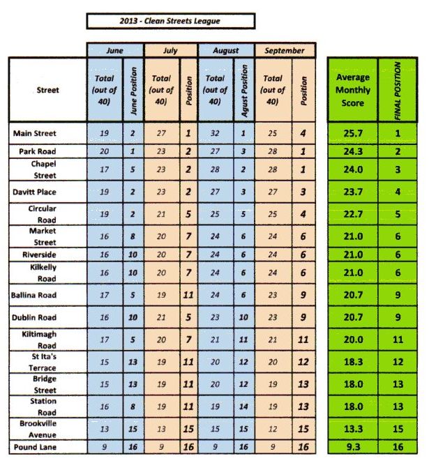 The winners of this years Tesco Swinford Clean Street League were announced at the awards ceremony in the Gateway Hotel on Friday night. Main Street won 1st prize with Park Road coming in 2nd. The winner of the Estates were Bollingbrook Drive which came 1st and Railway Terrace coming in 2nd. Swinford Tidy Towns committee would like to thank the Judges for doing a brilliant job for us. It was much more difficult this year with the inclusion of the Estates, which number 25 in total!