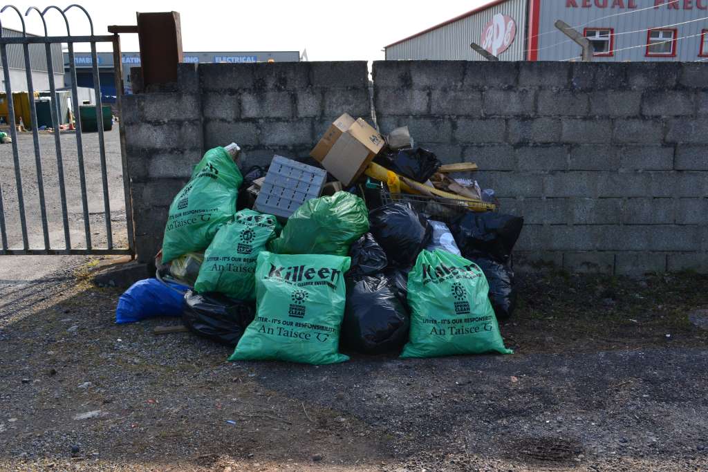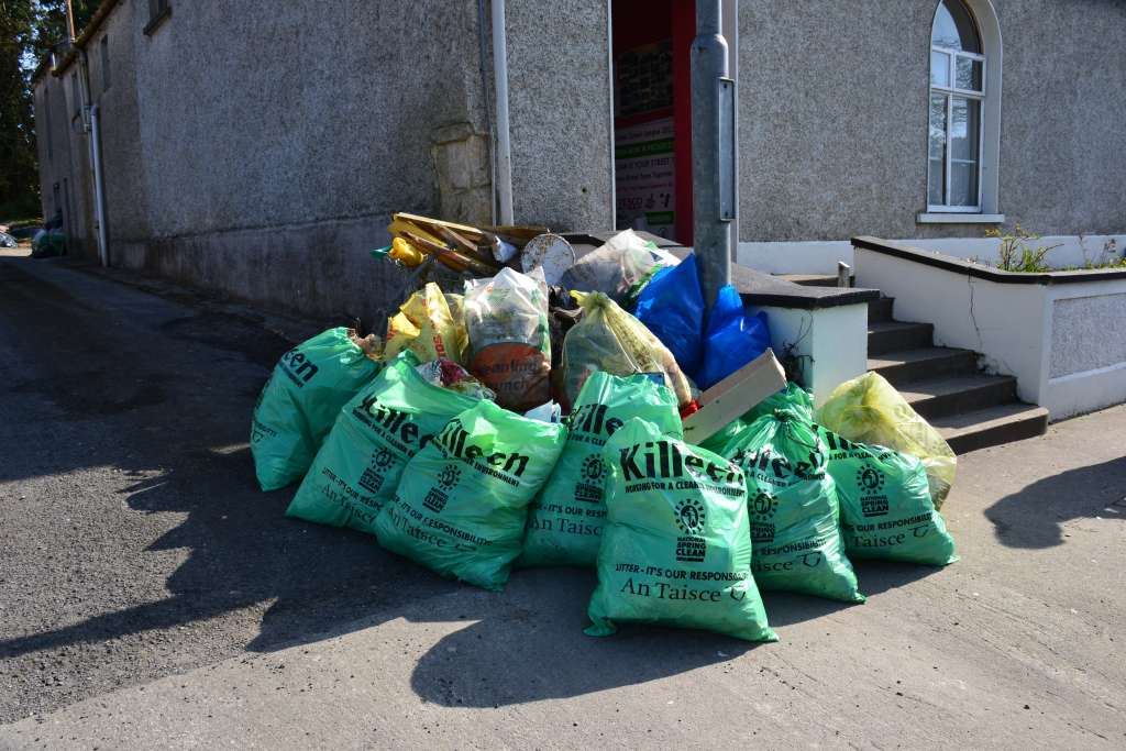 After doing a recce around the town over the previous few days, when I saw such a huge crowd of volunteers showing up for our annual national spring clean, I got slightly worried that there wouldn’t be that much rubbish for picking up. How wrong I was! Even though Swinford Tidy Towns have a weekly clean up every Saturday morning, we still managed to gather up 72, yes 72 bags, between glass bottles, plastic bottles, aluminium cans and general rubbish.