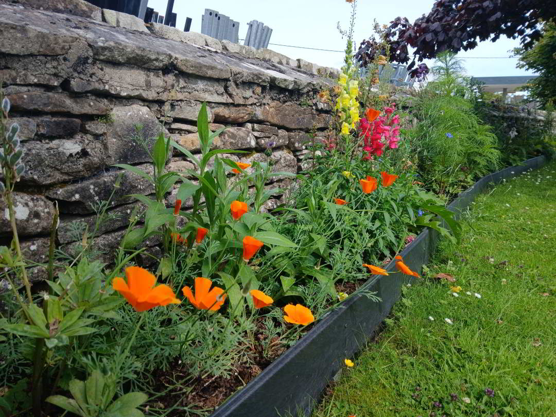 This area consists of a low stone wall fronted with a grass verge. There are also some trees and these are surrounded by daffodils. The grass is mown regularly. Planting native foxgloves along the wall will add extra summer colour to this area. Management Recommendations