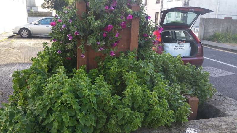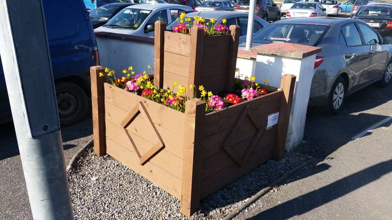 Not content with just building the one planter for the Courthouse, we decided to build two more! We have one positioned at the corner of the Church car park opposite Fraun Hill entrance. We have another placed at the corner of the junction of Bridge street and Riverside. Both of these are the same size and design as the Swinford Courthouse planter.