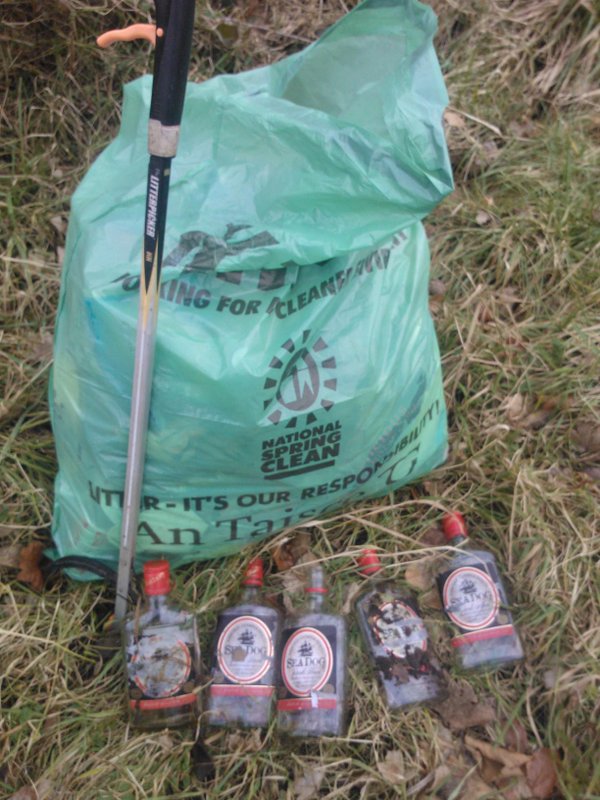 We have had another hugely successful 2016 Swinford Spring Clean here today! Huge thanks to all the volunteers that came out to help. Thankfully it stayed dry but was a bit breezy! 42 bags in total for recycle and disposal. We also got 2 mattresses, 3/4’s of a kiddies bicycle, a table (without chairs!) a pair of ladies runners (brand new!??) 11 bottles of “Old Sea Dog” rum (empty) as well as all the usual rubbish and unmentionables. Thanks to Imelda and Carmel for the tea & coffee and the legendary lovely sandwich’s.