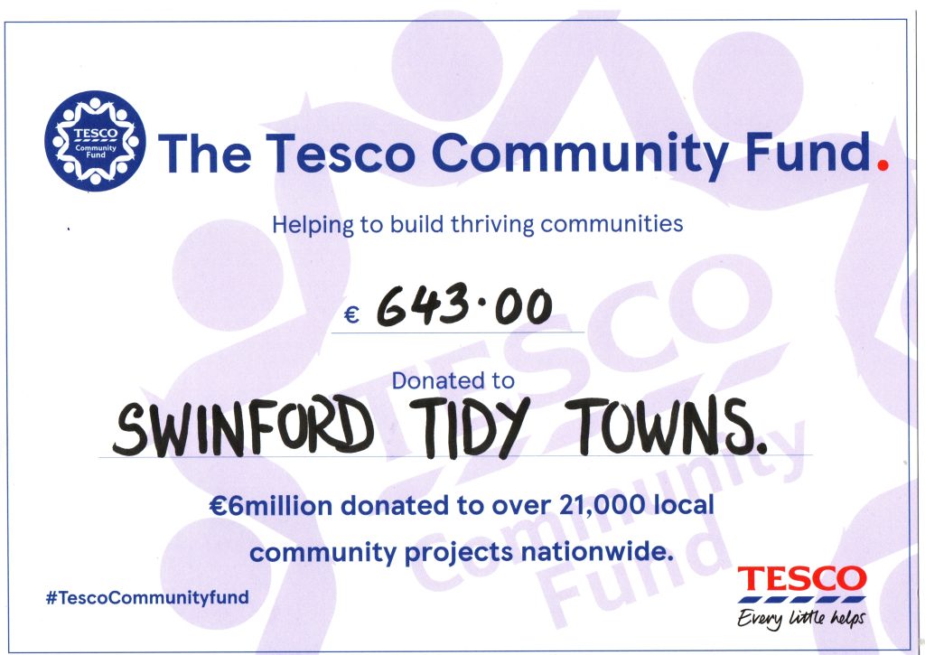 The Tesco Community Fund was launched, to support local good causes in the communities around each of the 166 stores throughout Ireland. Every 12 weeks, each Tesco store donates up to €2,000 between three local good causes in its local community. Swinford Tidy Towns committee would like to thank Tesco Swinford and the local community for nominating and supporting us.